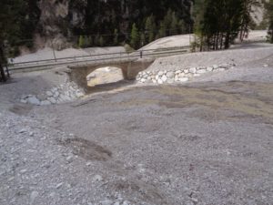 In caso di eventi meteorologici avversi, non sempre prevedibili, le colate di ghiaia che scendono dalle cime dolomitiche ammassandosi sugli alvei del Giralba e Gravasecca potrebbero infatti occludere la luce del ponte, impedendo il libero deflusso con conseguenti potenziali pericoli anche per gli automobilisti. Un simile fenomeno si era verificato, pur senza causare rilevanti danni, anche nel 2015.